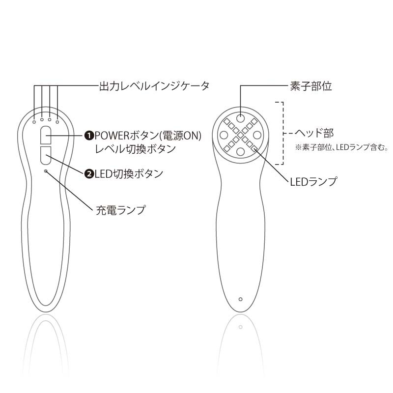 EMS[근육에 작용 리프트 업] 4극 채용 한 소자 부분에서 교류 전류가 근육 부에 작용, 탄력을 내고 리프트 업을 실현합니다.